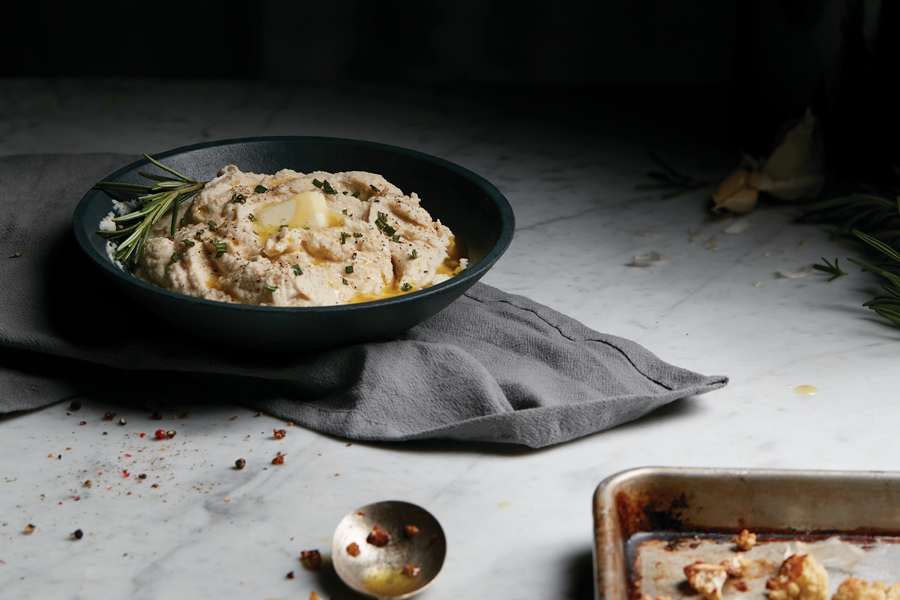 Este cremoso puré de coliflor es una deliciosa alternativa al puré de patata y se elabora de manera sencilla con coliflor asada, bebida casera de anacardo, sal y pimienta. Si estás buscando una guarnición libre de lactosa para cualquier principal de proteína, como un guiso de legumbres, unos bocaditos de pescado blanco o unas costillas de ternera, esta receta será tu aliada. Además, resulta ligera al paladar, pero con su intensidad de sabor gracias al uso de coliflor asada y a la textura de los anacardos.